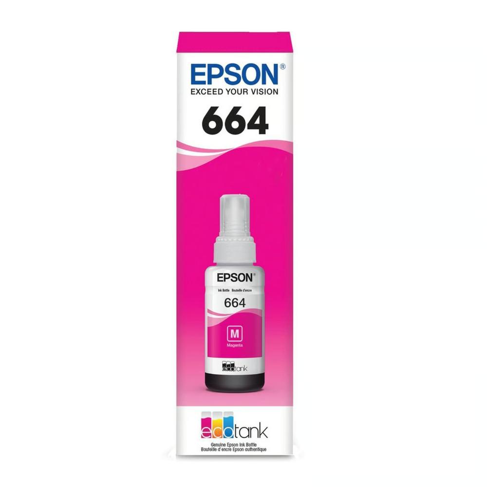 CARACTERISTICASBotella Epson T664320 – Magenta IMPRESORA ECOTANK EPSON L110, L1, L200, L210, L210, L300, L310, L350, L350, L355, L365, L475, L475, L555, L575, L565, L575 (7.500 páginas). Las tintas, los papeles especiales, y las impresoras Epson están diseñadas para trabajar juntas para lograr los mejores resultados.Utiliza siempre las botellas de reemplazo originales y económicas de Epson para proteger tu impresora. Impresiones brillantes y duraderas.