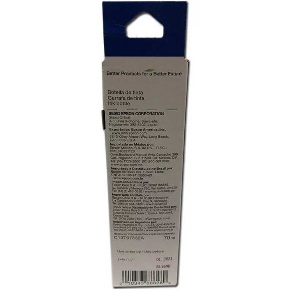 | CARACTERISTICAS | La Botella Epson T673320-AL está diseñada para la impresora ECOTANK en los modelos L800/L805 y permite imprimir hasta 1800 fotos de 10 x 15 cm. Esta botella de tinta de color magenta está formulada para preservar imágenes y producir fotografías vívidas sin bordes, resistentes a la decoloración y con una durabilidad que puede extenderse por décadas. Facilita la gestión de los niveles de tinta, permitiéndote decidir cuándo agregar más sin adivinanzas ni esperas. La confiabilidad en la calidad y el rendimiento superior son características sistemáticas de las botellas de tinta Epson 673. |