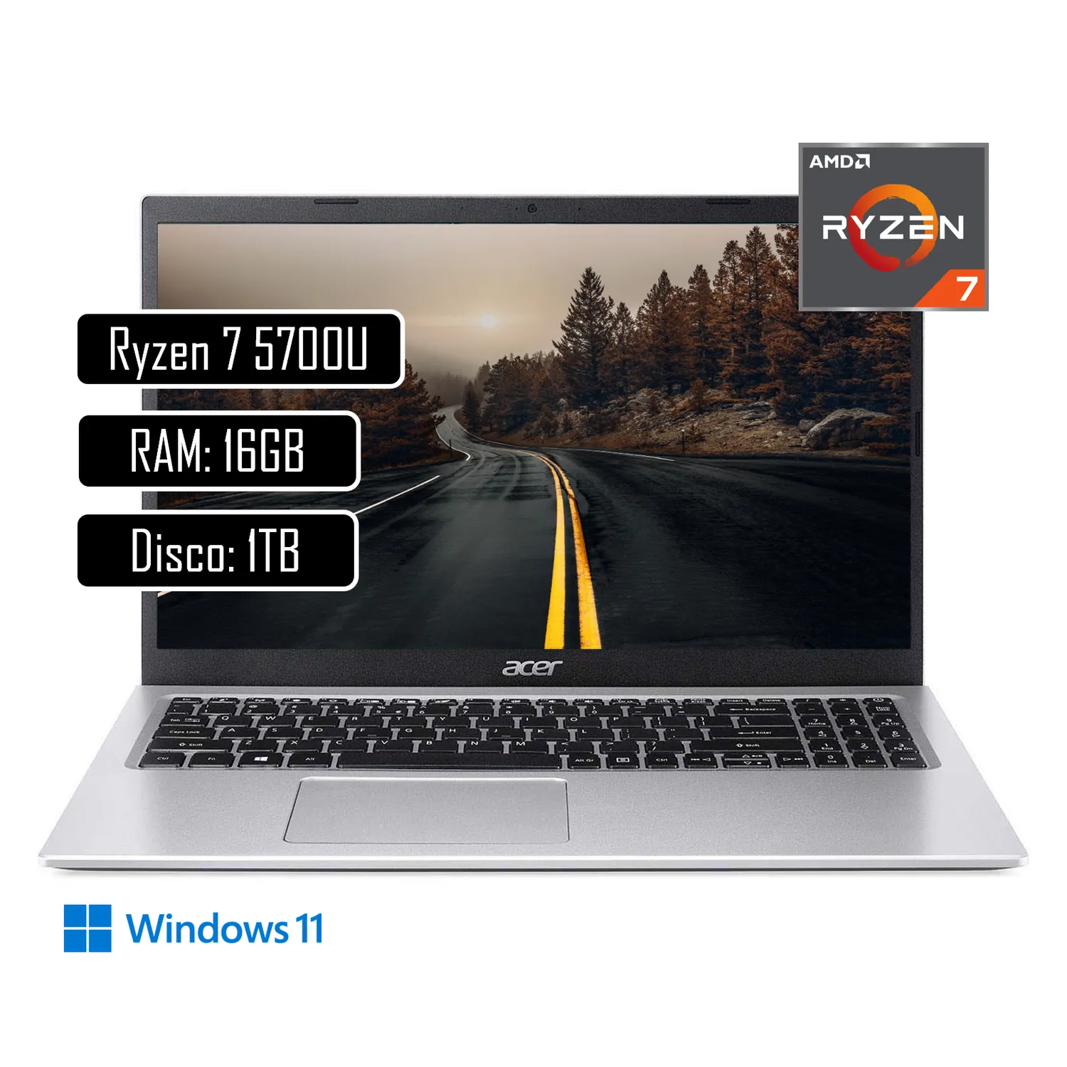 Portatil Acer AL15-43P-R17E AMD Ryzen™ 7 5825U 15.6 FHD IPS 8GB (1*8) DDR4 Memory/512SSD PCIe NVMe SSD/Windows 11 Home Single Color Silver