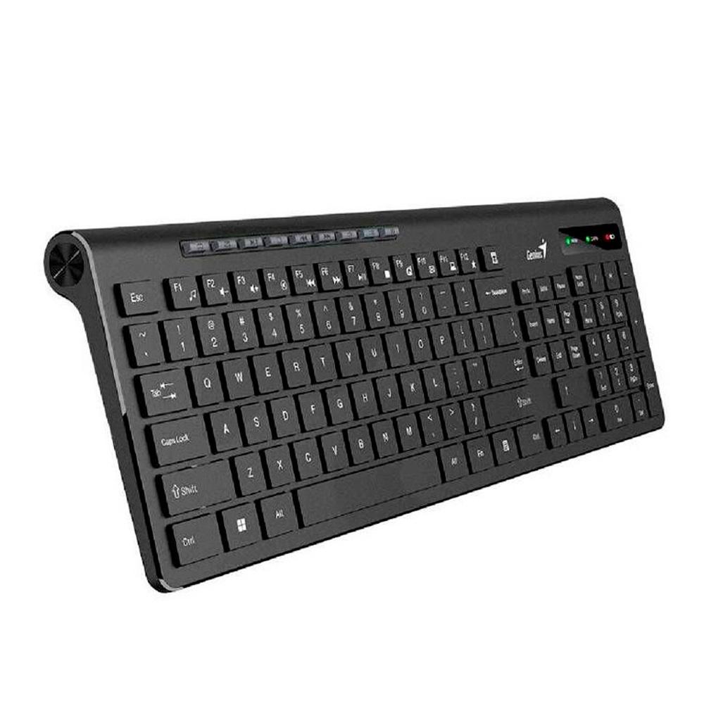 | MODELO DETALLADO | Tecado SlimStar Genius 7230 teclas tipo chocolate, ergonómico color negro/Interfaz Inalámbrica/Tipo de tecla Chocolate/Teclas de funciónSí, 12 (8 de audio, 4 de Internet)/Requisitos del sistema Windows 8, 8.1, 10, 11 / Mac OS X 10.8 o posterior / Linux OS / Puerto USB disponible |